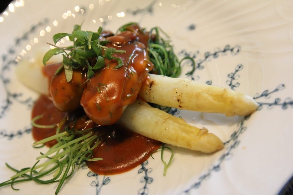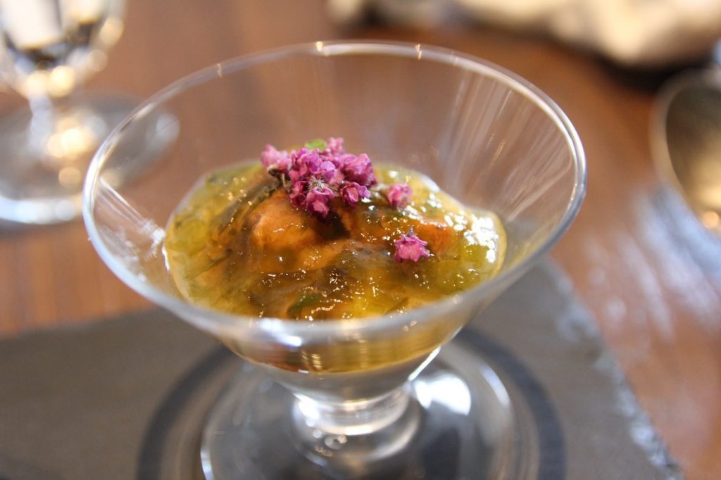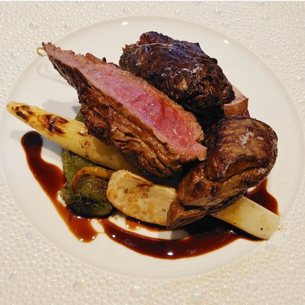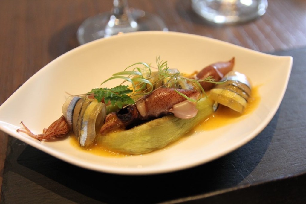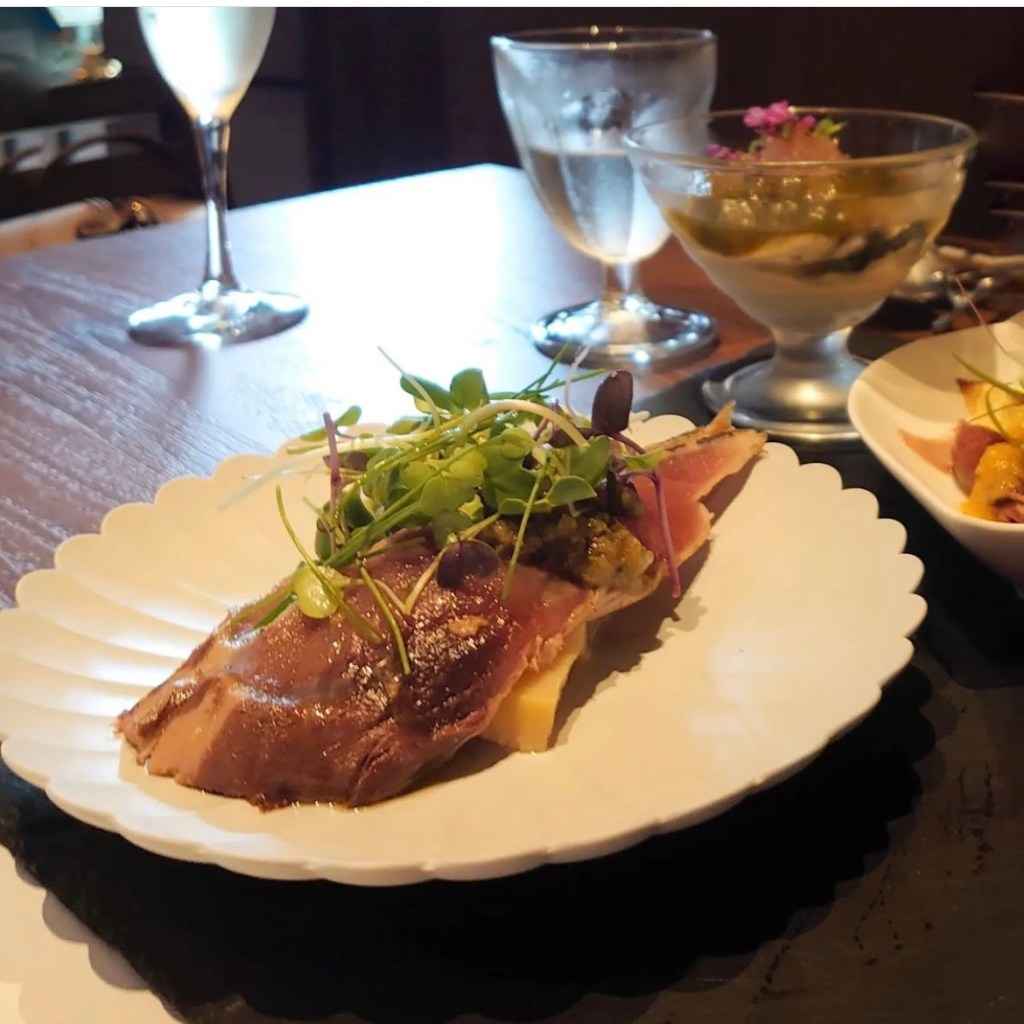 盛り付けも多少気をつかいますが、チームワークでやってる一皿の料理なら、一皿に2~3人がそれぞれババーッと盛り込み、あっちゅー間ですが、ここは私1人でやってますので、本当に必要だと思うもの以外は省きます。ここは潔さが肝心です。今風にモダンに盛り込んでも、そのお皿がおいしくなるわけではないという理由からで。質の良い食材とそのジュくらいで完結できるお皿を目指してます。
