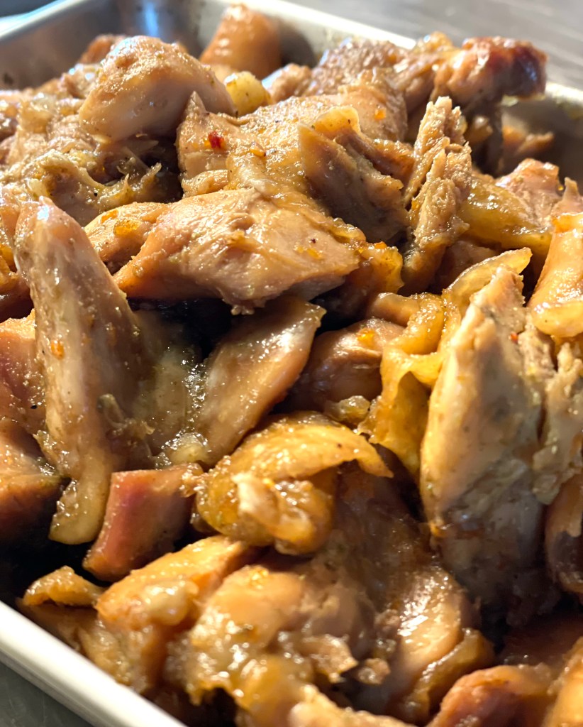 ぐふふふっ。次の肉ふりかけは、お肉屋さんが持ってきた鶏肉が、私の好みと少し違ったので、まるっといつも通り、どこにでもある味に仕上げてます。今回も、やまつ辻田さんの山椒をバリッと効かせてます。