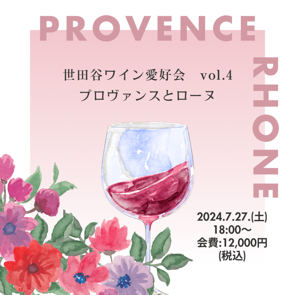 さて、先日告知しました世田谷ワイン愛好会ですが、今回はプロヴァンス、ローヌ地方のワインと郷土料理ということで、会費は12,000円となっております。